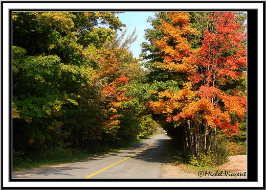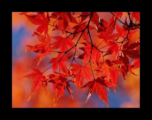 陡然間有了靈感,撿起一片楓黃,寫下一首小詩,用手往天空中用力扔出去,去山中浮動,飛到你窗前,再飛到你的耳際,輕輕的告訴你,遠方的我,在這楓紅季節時,對你的所有思念。