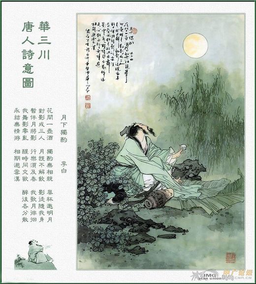 李白那種境界─舉杯望明月、對影成三人吧!