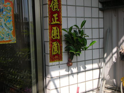 去頂的部分就拿來裝飾家裡外面插香的葫蘆.