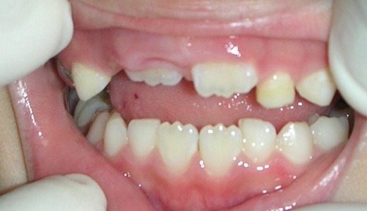 至於新長出的門牙太大,則是由於牙齒與臉孔間此例不協調所致,一個發育完全的牙齒(牙齒萌出,大小就不再改變)與發育中的臉孔湊在一塊當然會「覺得」前者較大,所以這種狀況會隨著顏面發育而逐漸會解決。(當然,也可能真的是牙齒本身尺寸太大,日後可以藉著矯正來改善)