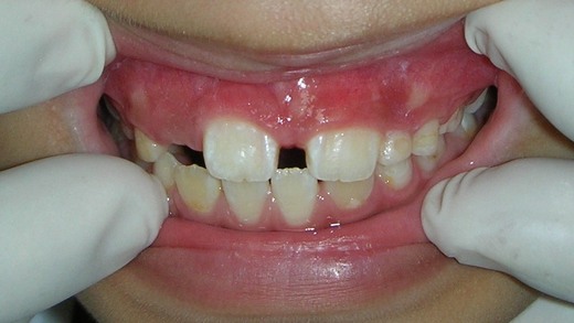 圖3上顎恆門牙不但牙齒好大,牙縫也大