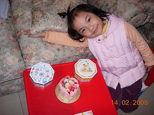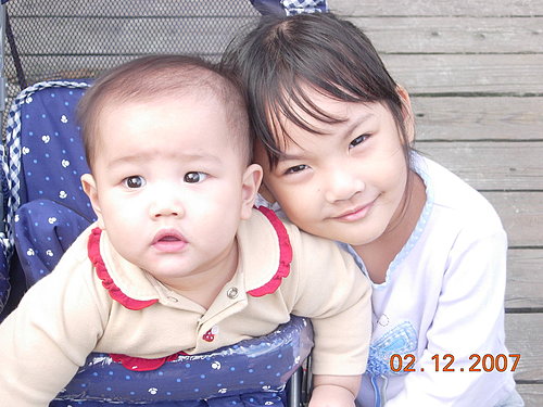哦!原來是小孫子們當天要回來了!天國真是幽默,以這樣的意境讓我去領會去了解小朋友是多麼的快樂‧記得女兒曾經告訴我,這隻小胖胖(男孩)平常不哭、不鬧而且獨自個兒很喜歡笑!原來是快樂天使!後來我心裏想著,“那麼另一隻小蜻蜓(女孩)呢,才剛腦筋一 閃突然間從小孫女的臉上,慢慢的綻放出一朵國色天香的牡丹花顯現在我眼前來!不由得讓人深深地讚嘆著!![]()