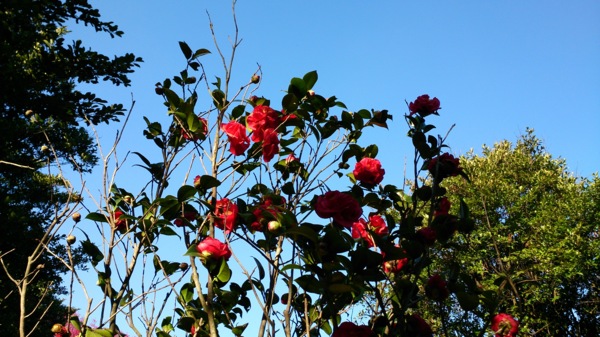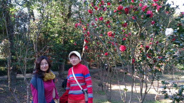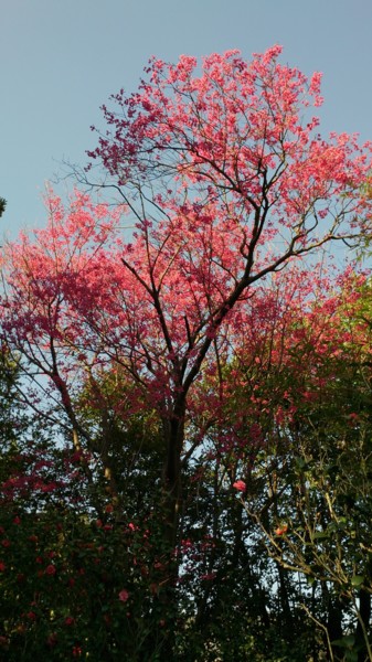 去年去日本九州賞櫻的時候,也賞了山茶花。看到山茶花樹上面開滿紅色的茶花,我想起席慕容的詩,[一棵開花的樹]。