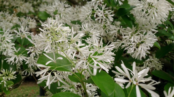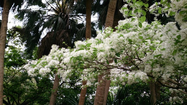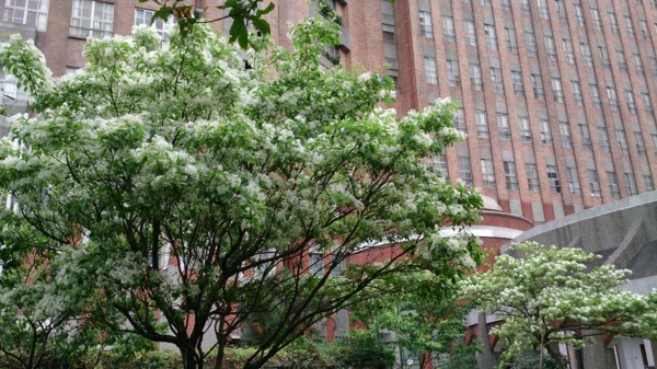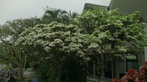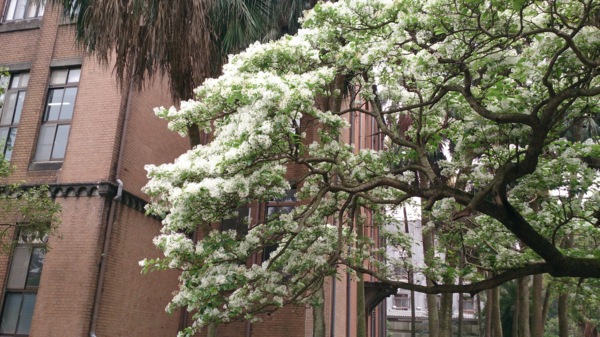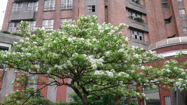 我念大學動物系的時候,系館裡裡外外到處有標本。館裡頭的天花板吊著兩隻鯨魚骨頭,走道一邊的櫥櫃裡也擺滿了動物的標本及骨頭;二樓還有一個日本前輩捐身的骨骼標本。本館後面有一棟魚類標本館,我曾在裡面做過魚類分類實驗。標本館外面也經常擺著浸泡著福馬林的魚類標本罐,空氣中總會飄著福馬林的辛辣味。系本館跟標本館間有一棵流蘇,再往植物系方向走,植物系溫室旁也有一顆;好像在動物系館前的右邊的杜英樹旁也有一顆。三、四月的深夜,走在陰暗的系本館與標本館之間,就會聞到流蘇花飄散在空氣中微微又奔放的香氣。年輕人愛胡思亂想,又剛看過大法師,走著走著、嗅著花香夾雜著福馬林氣味,不禁想起聊齋誌異的故事,總覺得背後有甚麼倩女飄過來,脖子發毛、腳底漸軟,不禁加快腳步,死命往前衝,直到女五舍前看到燈光才慢下腳步,故作氣定神閒。現在想起來,黑暗中竟然每次都沒有跌倒,還真神奇。