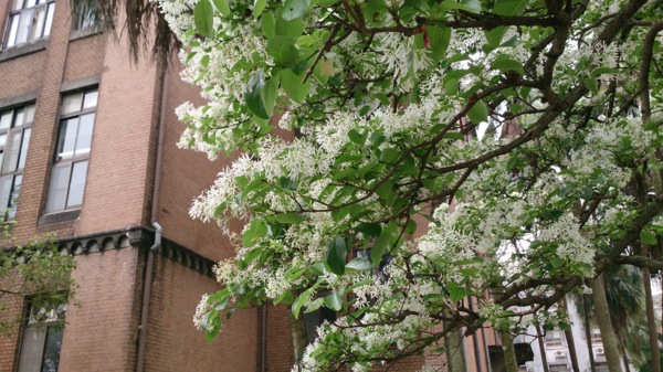 上個禮拜也在那校門口看到那白流蘇,及傅鐘後的噴水池周邊的花!杜鵑花都謝了,還有一感覺,杜鵑都變成好小叢了!是不是重新種過!