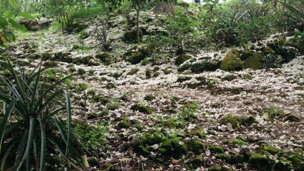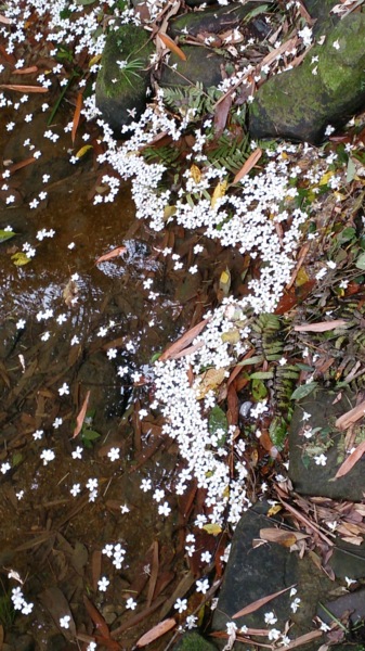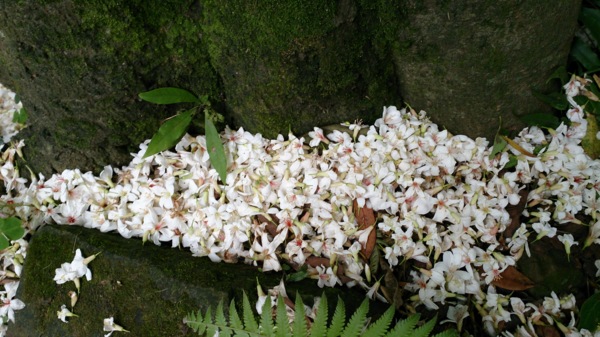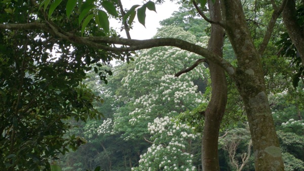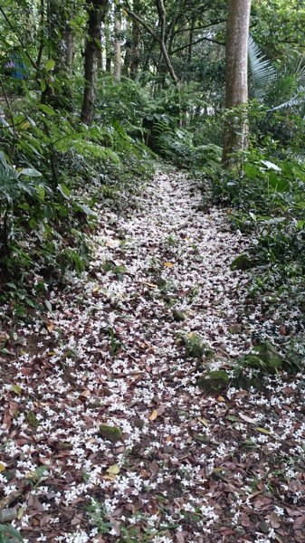 拍到樹顛的桐花固然美麗非常, 能見到小徑和溝壑裡落花的, 更有意境.