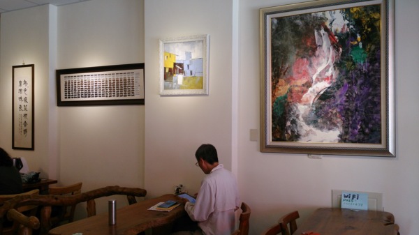 一家名叫行深的咖啡屋,全部原木的裝潢,看起來很舒服