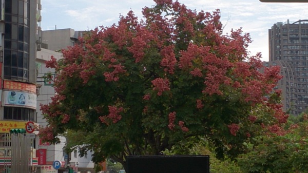 在新北投站下車,甫出站就見到這棵高大茂盛、色彩艷麗的台灣欒樹。