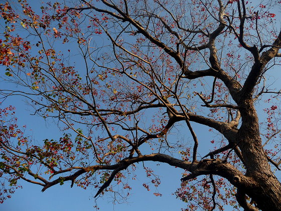 抬頭而望,蒼勁枝椏彷彿抓住難得的冬季藍天