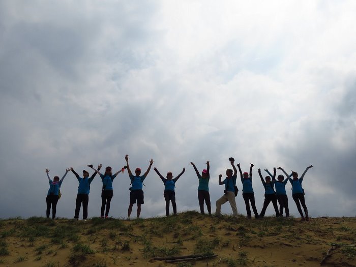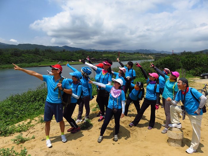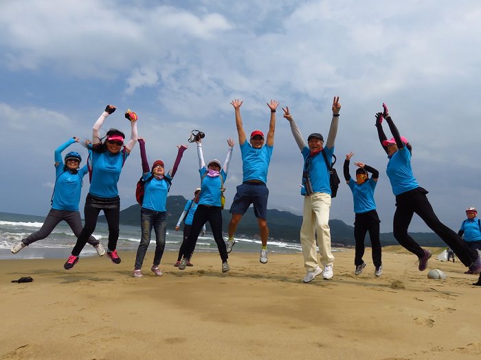 大家已經排好時間準備迎接美好的旅程,時間一改,必定造成許多不方便。我在群組上公告時,同學們非但沒有抱怨,每個人反而用樂觀的心情迎接改期的小旅行。「預報下大雨很危險、好的!謝謝老師、下雨騎車很不方便、下星期一定是好天氣 .....」收到的回應,都是「改天,遇見陽光。」的好心情。隔了一個星期,我們再次踏上旅程,早夏福隆雲淡風輕、藍天高掛,笑盈盈地展開雙臂迎接等待多時的十幾個人,擁抱一趟小而美的單車小旅行。