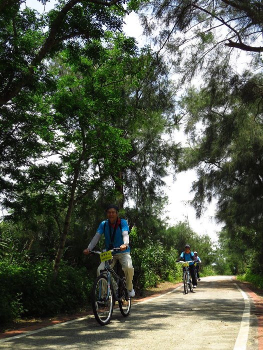 沿著海邊走還是有不少濃密的森林,大部份是黃僅,不到花開時節,卻有遮攔陽光的清涼與暢快。入秋的時候,開滿黃色花朵一定很美很愜意。樹牆偶爾會打開窗戶,把大海的光影和聲音放進來,鹽寮在不遠處,大家往前奔走,忘了站在窗前看望,漁船幾點、海水輕藍,我想日出的時候定有一番大自然留下的燦爛。保留一點小秘密,下回帶著大家來看日出晨曦,一起看大海感動。