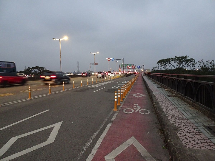準備進入新竹,頭前溪橋上設有自行車道,意外中感到安全
