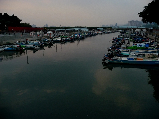 中港溪碼頭天色暗淡,水色與天色映成路過的風景