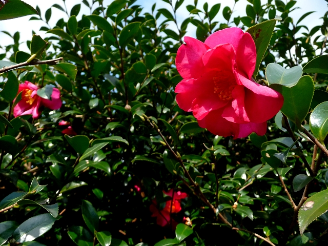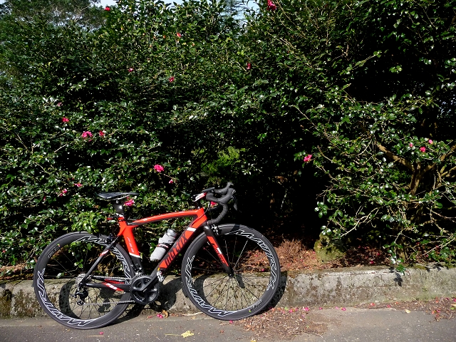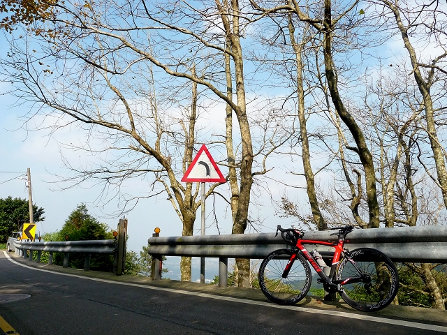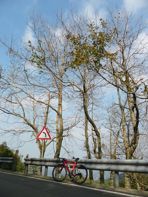 山茶花,冬季裡的一抹豔紅,過了6K一小片茶花園總是賞心悅目,為單車或行人鼓掌歡呼。我知道,老調重彈難能引人注目,但我永遠記得「遺忘過往一定沒有未來」,回憶是鼓舞向前的動力。茶花園前必定停下腳步,想著每年蹬踏至此的心情點滴;楓都沒紅過,早已枝椏盡露,我卻等不到依靠春天,一起仰望天空感嘆湛藍的驚呼。二子坪到了,溫度7度,山下帶上來的那瓶熱水,水煙直冒。