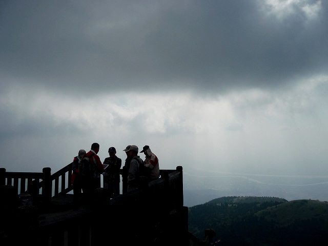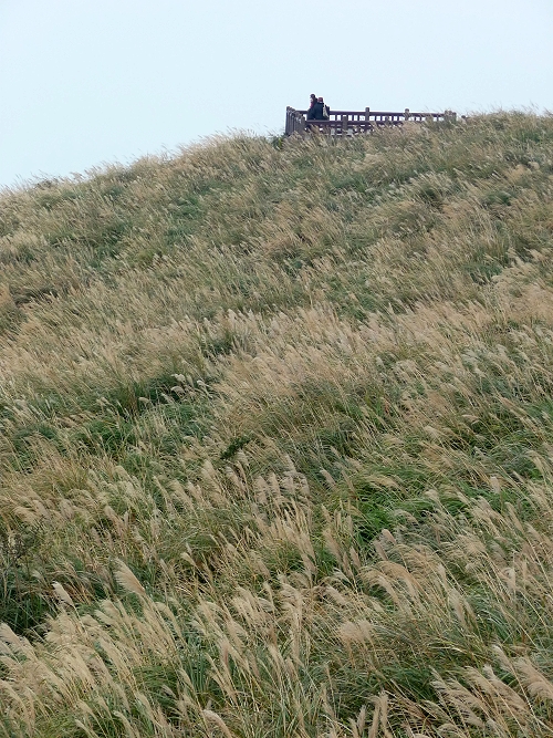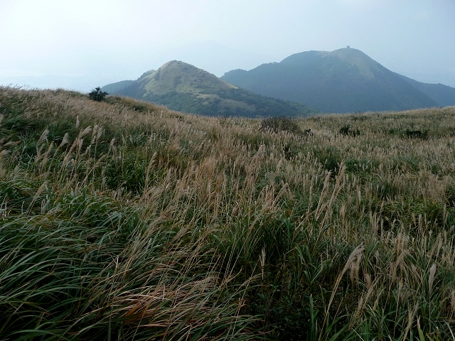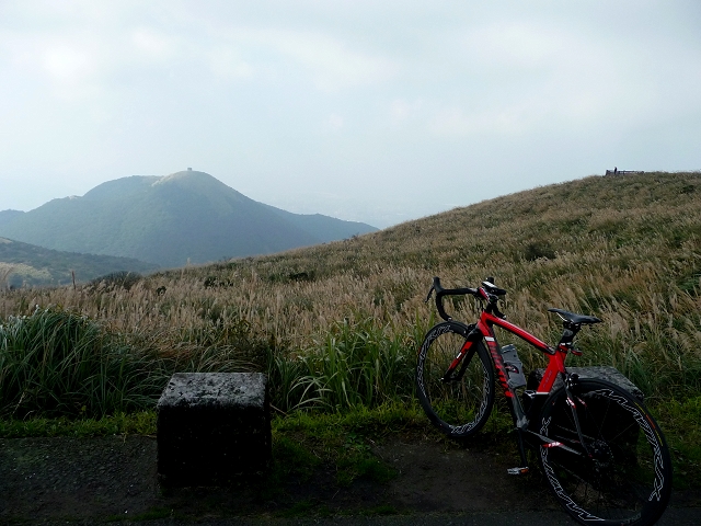 往大屯山助航站短短二公里,10%陡坡騎來特別辛苦,滿山芒草飛揚,夏綠冬褐,山頂上毫無遮攔,季風常年陪伴。除了芒草,箭竹林披覆山頭,騎單車上來,還多了一份準備抽筋的無奈感。還好,新車輕了一公斤多,平常跑步、游泳肌群耐力尚可,輕輕踩著、踩著,高點就在不遠處了。如心中所料,台北的霧氛罩上朦龍美,視線若有似無的輕眺大台北盆地。山上芒草冷冽如你,那瓶為你帶上來的水,是否暖了今天你的心。我知道,你奮力撥雲見日,淡水河、基隆河你交匯指向大海,永遠是站在高點暖心的美麗圖像。