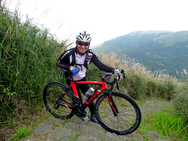 新車Matrix F35 加上 Matrix T50輪組,還有2014一年心裡的感動,陪伴上山迎接新年。騎車十幾年來,沒有為自己的單車旅程添上一筆亮麗的單車色彩,今天倒是新車迎新年,鼓勵未來的日子邁步向前。新單車看起來特別亮眼,紅色車身、黑色輪組,一股往外奮進衝刺的熱血,平鋪在輕盈的碳纖維公路車身軀。第一次踩碳車上山,每次用踏板畫圓,感覺輕鬆、飄飄欲仙,滑過連結心緒的每一根神經。慣性板輪,迴轉速一帶上來,往大屯山的巴拉卡公路6%斜率上坡,有若乘風飛翔,輕輕飄然,便上了二子坪。