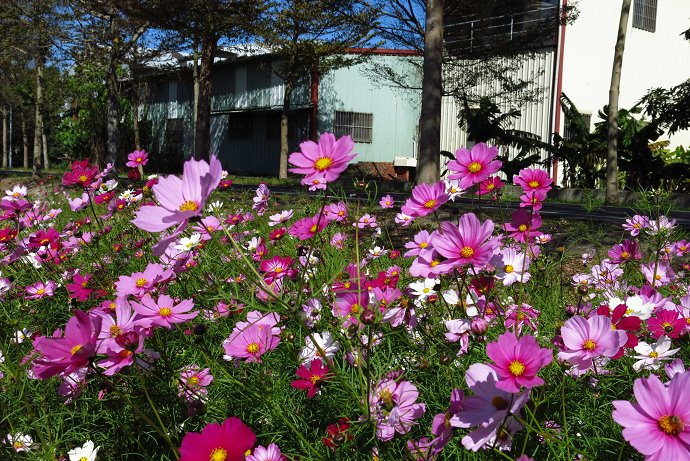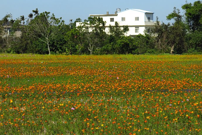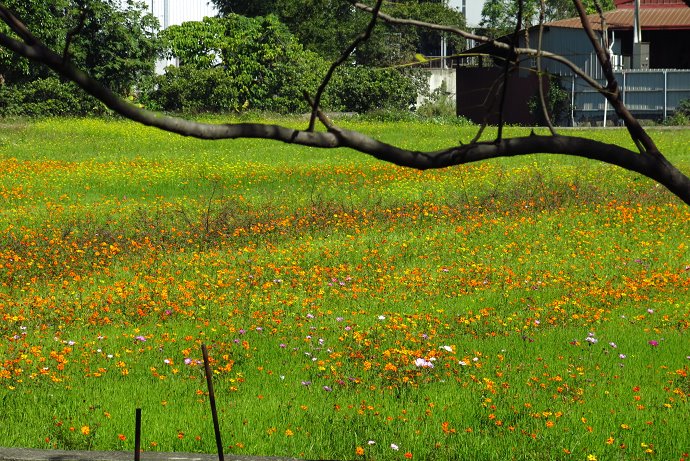 樹林子外又出現波斯菊的亮黃波斯菊