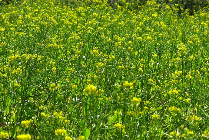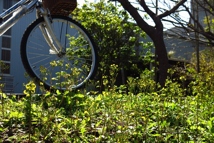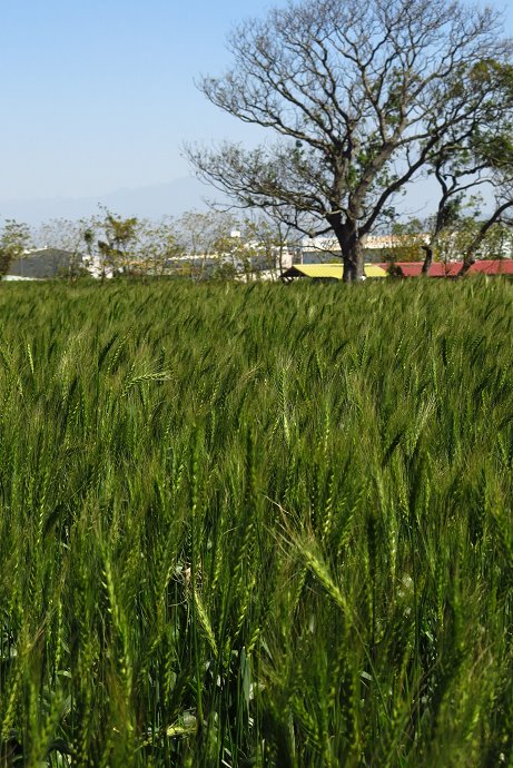 大雅,麥田的故鄉,迎風擺動的麥穗藏在自行車道的坡坎下,春天的麥穗漾著輕綠。經過清泉崗,空氣中漫著開闊的草原味道,這時進入了大雅境內,成排的台灣欒樹伸手搭肩,抬頭是一次又一次失去綠葉的枝枝節節漫天,原始的況味等待再生,美感煞是蕭瑟。當視野開闊,那些搖風向陽的麥田春穗,漾著別處看不見的柔軟麥浪。春天脫去夏綠換上冬服的蒼蒼老樹,被花海包圍、有麥田陪伴,等待春暖花開欣欣向榮。