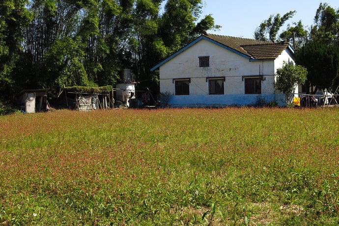 有些水田冒出紅色的旱苗蓼,一片曠野風情