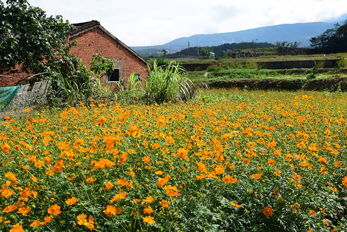 與風芝門平行的北14鄉道,鋪著美麗花色的鄉村景致