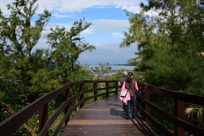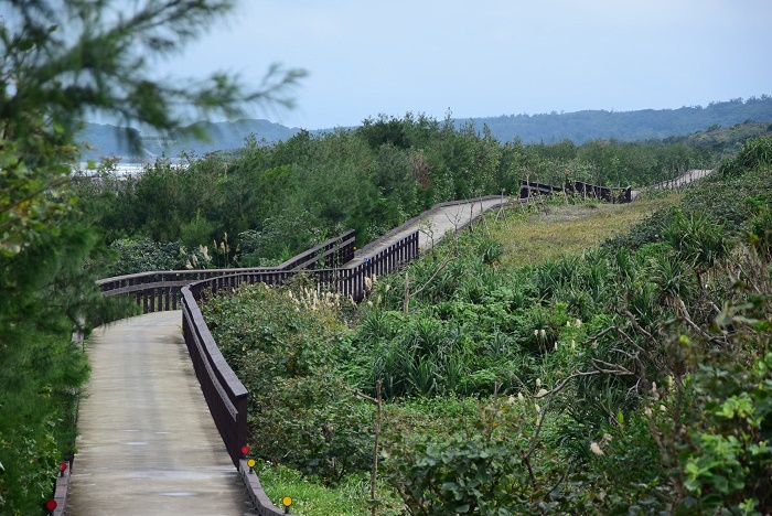 在木麻黃林間蜿蜒的自行車木棧道
