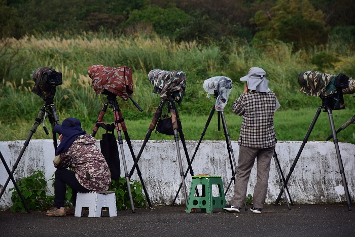 因為小白鶴定居附近,攝鳥人等待美麗的生態畫面