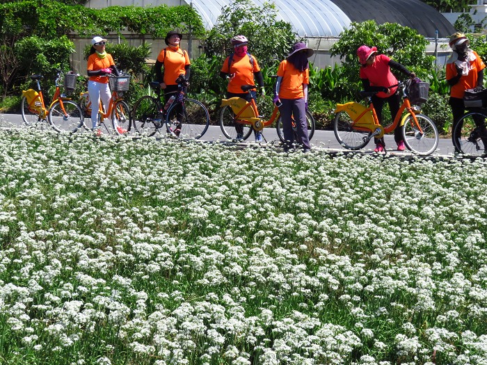 韭菜是秋天最盛大的花景,沿著田埂鋪上雪白,平平實實不耍花俏,濃淡皆宜。走進去,白色的花朵當作浪花,遨遊花海,看見大溪不一樣簡單美麗,騎單車三四十公里的辛苦,絕對值得!