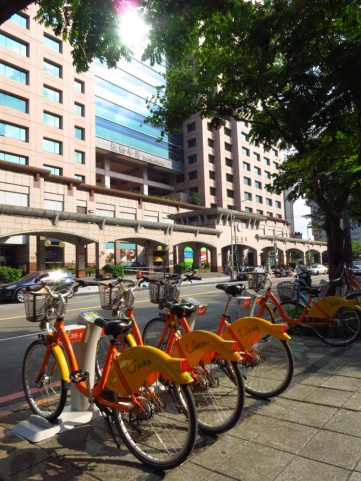 雨後的午後,秋日陽光下那一整排ubike被照得有幾分美感