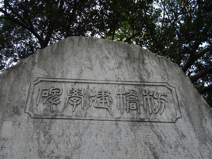 站前寬大的文化路直通舊市區,接近南門街上的往日光景,腦海裡那些溫馨的回憶,開始一幕幕浮現腦海,單車速度就像是當年送修手錶一樣緊張又快不起來。踩過板橋國小前人行道,玻璃牆裡佇立著大約一層樓高的石碑,細讀碑言,發現是一塊日治時期,林家助學的紀念文告:「枋橋建學碑。」1908年,台灣總督佐久間左馬太表彰板橋林家捐地出錢,建立因為「大觀義學」容量不足的枋橋公學校。百年前的興學歷史,突然讓我想起市中心的幾條馬路,北門街、西門街、南門街、東門街,直白表示一座消失的古城,城牆曾經圍繞舊名枋橋,還有坐陣城心的府中路,貫穿古今的故事,都成了車水馬龍的市街景色。