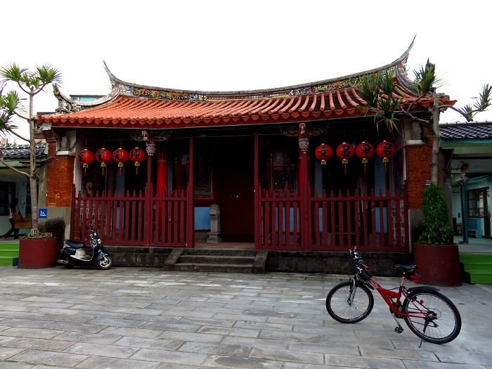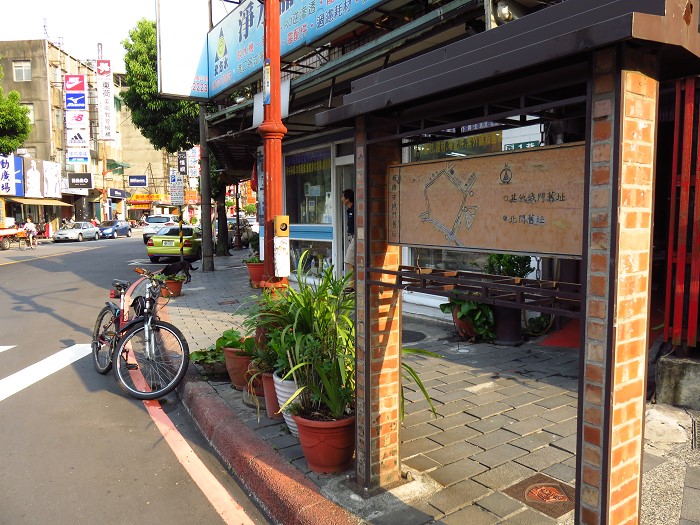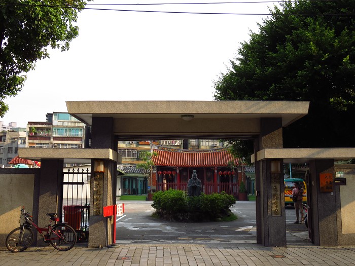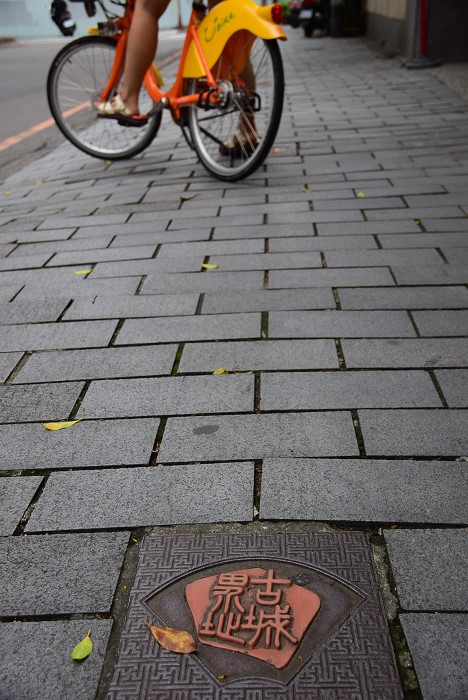 板橋古名枋橋,最早的一間媽祖廟就在府中街上,經過北門街口,我先往慈惠宮,合十祈求有一趟完美的單車小旅行。廟門正對著宮口街,一個老有年紀的市場。不少遠近馳名的小吃,從我有記憶以來就躲藏在小巷子裡,賣了幾十年的台灣老味道,高記生炒魷魚,酸酸甜甜的。如果很久沒吃過,偶爾再吃的時候,就像板橋的記憶一樣,若即若離的在心裡微笑著。從市場騎出來,北門街口左轉,就沿著古城牆的歷史光景漫步了。北門街和西門街口的人行道上,鑲著古城界址的花磚,這時候的單車輪跡,便和久遠的城牆線合而為一,在時光的邊緣散步。北門街口剛好是大觀義學(文昌祠),也是現在的板橋孔子廟,剛才在板橋文化路上看見的枋橋建學碑,它的故事一路延伸到北門街口的文昌祠,從清潮中葉的漳泉械鬥到日治時期的板橋公學校,再幻化成今天承載過往的歷史古蹟,走進來,有如打開板橋史冊,一頁又一頁的十分精彩。