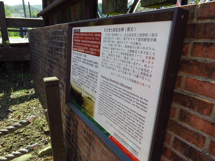 草嶺隧道完工前,現場工事監督員吉次茂七郎不幸病逝,他的紀念碑位在草嶺舊隧道北口不遠處,冷落的山風與歲月在那塊石碑寫下斑駁,路人的眼光卻很少投影代表草嶺隧道的歷史故事。這天我帶著萬華社大學員單車旅行舊草嶺環狀線自行車道,路過紀念碑前,大家一起停下單車緬懷東北角悠悠日子裡,被遺忘的故事。
