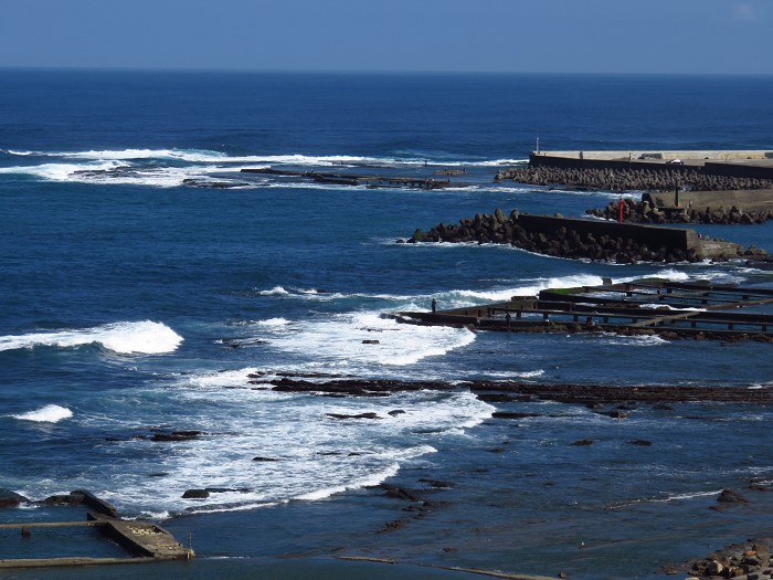 離開石城,輕騎海岸往福隆,台2線濱海公路緊貼著,但有完善的分隔設施,大車一旁呼嘯,心裡卻很安穩。收攏山海景觀的自行車道與大海平行,一起轉彎、起伏,也一起看山、望海。海岸的珊瑚礁千變萬化,海天一色比墾丁美、視野比花東均勻。往前眺望,看見走過的路來自壯麗,往後回眸,未踩過的前方幾分開闊。騎著單車,常會忘記里程、失去時間;轉進小漁村裡,還有在地人生活的故事。馬崗漁港裡有不少早期建築的小屋子,黝黑的外表圍著厚厚的石牆,人可以在上面行走,或坐或躺,像是小小的城牆。馬崗以前沒有漁港,漁人歸來把船沿著小溪拖到地勢較高處,漁家面海而居,為防天侯不好大浪打入屋內,面海的人家多會在門前築起防浪牆。目前留下的牆面有1~2公尺寬,石村取自附近海岸,與地形地貌合而為一。