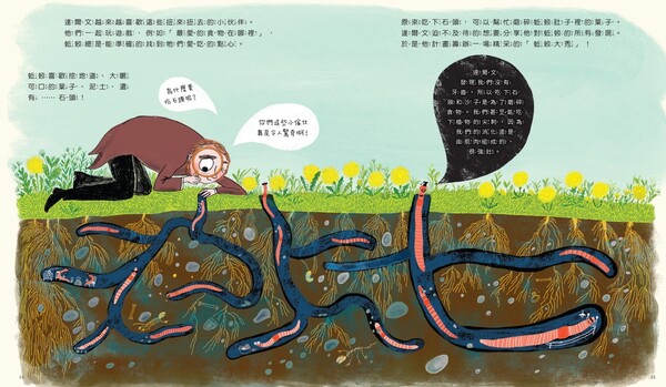 也許是對蚯蚓懷著這種特別的情愫,所以初見《蚯蚓的超能力和達爾文的奇妙實驗》這本繪本,就忍不住想要一探究竟,也想知道達爾文是如何看待這個不起眼的物種。