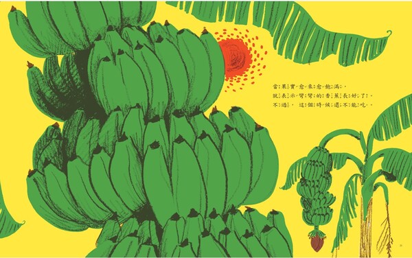 這些知識如果只寫成文字,可能顯得生硬;但透過繪本,香蕉的每一個階段都變得有形有感。孩子會明白,為什麼香蕉要在還沒變黃前就採收,為什麼運送過程中需要控制溫度,也自然理解,市場裡那一串黃得剛剛好的香蕉,背後其實經歷了許多看不見的照顧。