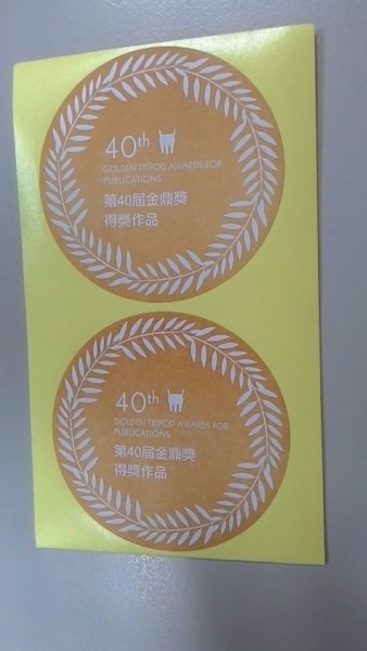 日前趕了幾本校稿,沒空整理隨手抄的紙條或文件,桌面亂七八糟。傍晚下班前,稍稍整理一下桌面,一只米黃色的信封跑出來,打開一看,原來是今年兩書獲得金鼎獎的貼紙。