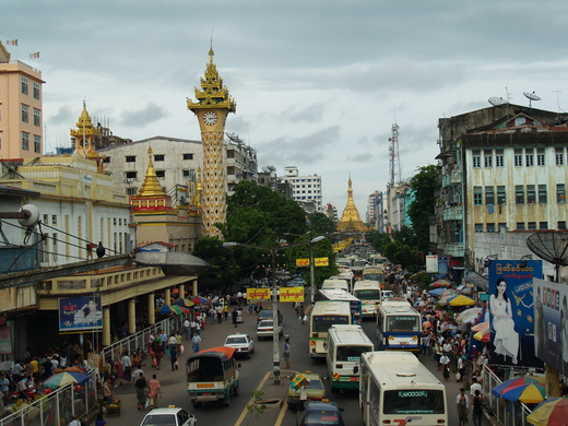 其實我覺得我的仰光經驗很獨特,畢竟我從未在任何一個地方與「叛軍」領袖偶遇,我也從未在滿是散著光亮的佛塔之國旅行過,那夜間的佛塔即使散著光都還有一種黯淡,說不清的黯淡,每回我走過那座天橋,我總會在那裡凝神片刻,幾百公尺外的佛塔似乎就是光亮的所在,只是那光很隱諱,街上的行人三三兩兩,即使是夜間的八點,仰光的熱鬧似乎也不復記憶,幾年之前的番紅花革命在槍聲中倒地了,那條大街上也該有一些意外的,我兀自這樣想,那種奇特的感覺好似幾年之前我在某個夜晚的天安門廣場上一樣,我知道那裡在1989年的