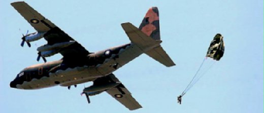 搭乘C-46老母雞在潮州傘場徒手、裝備跳五次通過才能結訓