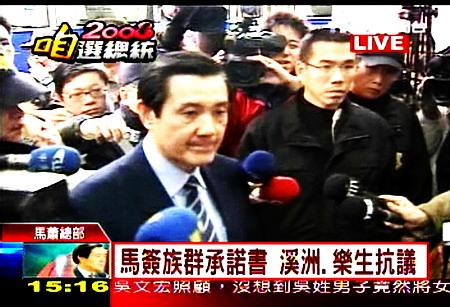台灣和平基金會執行長簡錫堦等民間團體發起人,27日下午前往馬英九蕭萬長競選總部尋求政黨候選人簽署「族群和諧承諾書」,馬英九當場簽署支持。他表示,尊重族群和諧以及不挑起族群對立,並促進族群間的理解,一直是他的理念,因此在18日收到該承諾書時,他第一時間就簽署了承諾書。