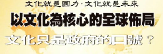 文化的累積何其艱難,摧毀卻只需一瞬。林懷民先生無怨奔波,但是一句「文化只是政府的口號」,直指政府──絕不只是民進黨政府──長期以短線操作的辦活動心態看待文化的膚淺,讓為政者汗顏。2008,文建會編列預算61億元,僅佔總預算0.36%,比起2003的0.38%,不升反降。邊緣化的文化政策、妝點性的預算比例、扮演化妝師的主管機關,都讓台灣的文化藝術工作者陷入艱困的掙扎。