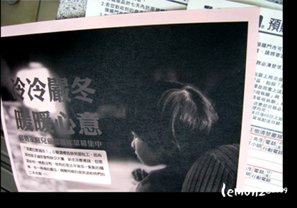 兒盟在今年辦了個很有意義又很有趣的活動「冷冷嚴冬 暖暖心意─弱勢家庭年菜募集」,他們希望能為他們服務網中將近700個弱勢家庭募集到年夜飯。這些弱勢家庭,生活困難地連頓最基本的年夜飯都無力負擔,所以兒盟希望今年一定要讓這些弱勢家庭至少有四道豐盛的年菜。因此,他們得到台北市中正區的7-11的協助,辦了這個由大家點年菜讓弱勢家庭過好年的活動。