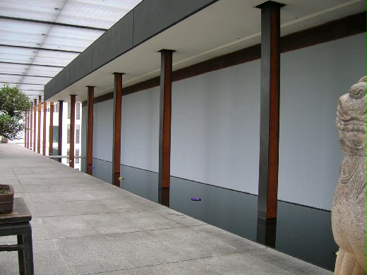 涵碧樓沒有很氣派的大廳,但裡面無處不能沉澱思緒,充滿禪意的輕鬆。大門旁有"鏡射水池"是涵碧樓的一大特色,鏡面般的水池 一時之間,還誤以為是一面光滑明亮的黑色大理石,據說,以前有不少遊客不小心掉入水池,但現在水池上擺上了蓮花,服務人員也處處小心叮嚀,這樣的事件就少了許多,白天時,水池像是將日月潭的潭水和涵碧樓的建築合為一體;晚上,水池可真像是黑色大理石,池中點了一盤盤的蠟燭,形成由火光點綴的黑色步道。