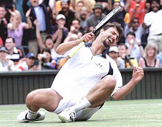 持外卡、連打了十多場不必要的比賽,左手持拍、克羅埃西亞籍的伊凡尼塞維奇(Goran Ivanisevic),經過三個小時扣人心弦的五盤大戰,終於戲劇性的擊敗兩屆美國公開賽冠軍的澳洲球王拉夫特(Patrick Rafter),獲得生涯首次大滿貫冠軍。