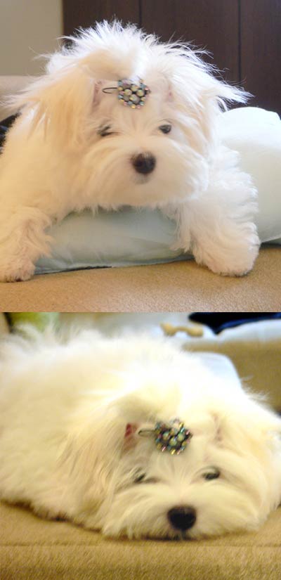 終於被麻咪綁好頭髮,戴上剛剛微風買的小公主髮夾,很不快樂的照相.......