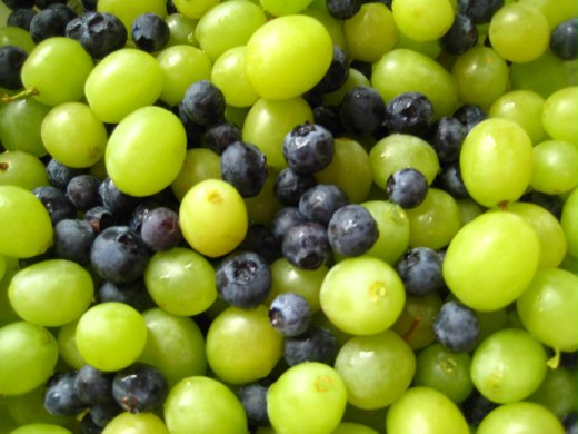 回到家裡把藍莓與葡萄放在一起洗時, 發現它們的顏色好美 ! 心想在這寒冷北地還有這麼新鮮美麗的漿菓,真要謝謝許多人. 翻看一下包裝袋發現它們可都是來自南美的智利. 嗯, 不須買機票就可吃到南美的水果, 不知可否不須買機票就享受得到南美的陽光 ??