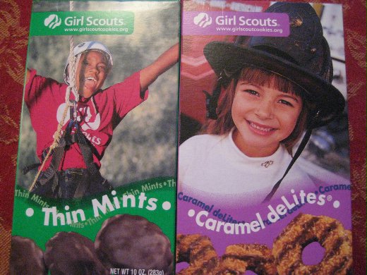 傍晚時分老公還沒回來, 正坐在二樓電腦前看網誌; 突然傳來急促門鈴聲. 從窗戶看出去一輛車停在路邊. 這個時間應該不會是傳教或推銷員吧 ? 下樓開門只見一個小女生拉著一個小推車轉身離去, 叫住她並問她是甚麼活動? 被冷風吹得鼻頭紅紅的她急唸著她為小學某個活動義賣女童軍餅乾.. 一盒 3.5元. Robin 雖然不愛吃餅乾, 但為了鼓勵小朋友也買了兩盒. 這麼冷拉著一箱餅乾每家每戶按鈴義賣餅乾實在須要鼓勵. 很重要的一點, 父母親都親自開車陪同, 除了參與也給孩子们保護.