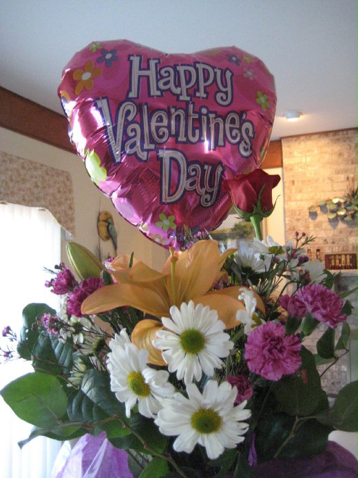 買菜出門前還看著老公穿著睡衣在電腦前工作, 不到一小時回來, 發現他的車子不見了 ! 這就有些奇怪, 檢查一下我的手機沒有來電未接的電話; 桌子上也沒留紙條; 打電話給他也沒接?? 發生甚麼事讓他這麼匆忙的離家? 會不會報稅季到了拿稅單去會計師那? 不過這點馬上被推翻掉, 因為家裡的各式文件只有我最清楚它們的位置,他不會這麼靈光的. 再用力想想...對了,今天一早他就對我說 " Happy Valentine's Day!" 很有可能他趁我出去買菜時偷偷趕出去買花 ! Bingo ! 果真十分鐘後老公笑咪咪的捧了一束花進屋裡來.