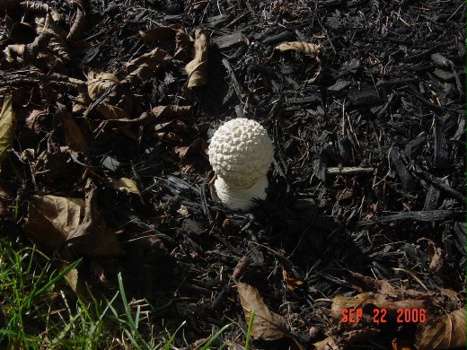 上星期發現了一個像高爾夫球的蘑菇,沒多久被剪草工人掃掉球部, 僅剩球座.