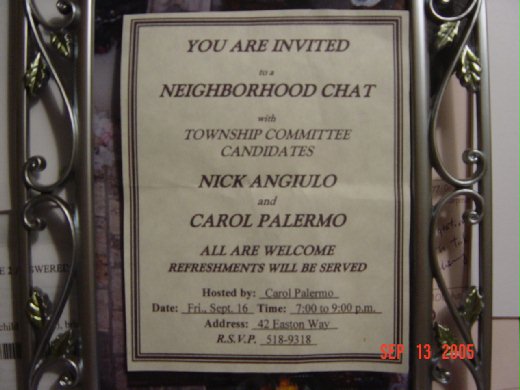 從此以後, Carol開始變本加厲她原本就很拿手的敦親睦鄰,常常沿街聊天,任何角落都可看到她胖胖的身軀, 非常的有精力..只是我感覺奇怪,為什麼一定要選甚麼委員會? 莫非有什麼利益? 而每次看鎮公所的委員,職員, 市長,州長或州議員,眾議員..怎麼姓氏看起來都很義大利? 與老公討論起來,如各級政治人物,垃圾公司, 回收公司,大小工程公司,建設公司..都以義大利人居多. 想想看, 義大利人號稱是歐洲的中國人,對政治的操作與玩弄錯綜的政商關係絕對不會遜色! 有道理 !