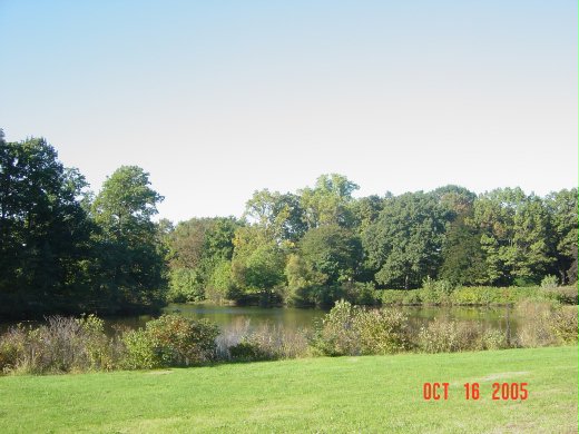 上星期的賞楓之行因雨中斷,今天在外用完早餐後,我提議在回家的途中,順便到鄰鎮的一個湖邊公園走走,雖說是公園, 其實僅是兩三個小湖,湖邊常駐著幾群加拿大野雁. 早晚有人慢跑, 散步或溜狗. 中午時常有附近的上班族開車來這裡休息順便用餐. 我們也常經過卻未曾停留. 今天刻意地轉進湖邊小路才有機會在這裡散步,湖邊已經有些輕觸的秋天色彩, 然而樹梢或水草的淺黃,讓我感覺要看到炫麗的秋景可能還要一星期或10天左右. 嗯,只要不下雨,一星期或10天應該不會讓人等的心煩. 走著走著,告訴老公,昨天去林太太的小店時,特意挑選另外一條鄉間道路,在經過鎮公所不遠處,看到路邊有一個新立的公園路標. 那附近以前有印地安人住的樹林,還有小溪穿過,所以建議我們的下一站就轉到鎮上的印地安樹林,順便探一下秋景.