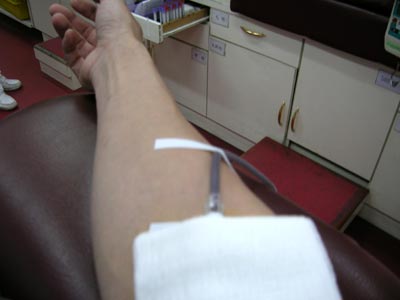 捐血,其實沒什麼,而捐250 cc和捐500 cc並沒差別,一年最多只能捐1500 cc,新聞中常見報導捐了幾百次的人,多半是捐成分血(就是把血液抽出後,濾出所要的成分,其他的成分再注射回體內,但較費時,一次好像要一個半小時)。捐全血,一年最多只有六個單位,捐幾十年也不過百來單位。一個人身上的血約佔體重的十三分之一(這是往健康教育教的,不知有無記錯),如此估算,我大約有五公斤血,也差不多是20袋,那我應已捐超過身體血量的兩倍以上了。